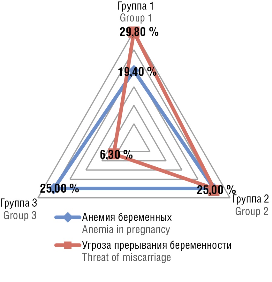 В нашем исследовании показано, что анемия беременных в 25,0 % случаев наблюдалась у женщин старше 30 лет, и это меньше, чем средние показатели по России (35,5 %), а у женщин моложе 30 лет этот показатель был ниже (19,0 %). Болезни мочеполовой системы выявлены в 16,5 % случаев, что практически соответствует данным по России.