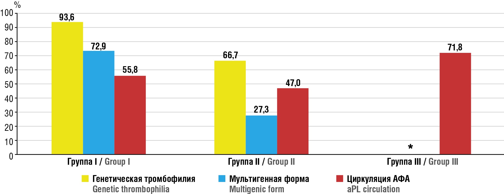 Примечание: * – анализ на наличие генетических форм тромбофилии не проводился; АФА – антифосфолипидные антитела.