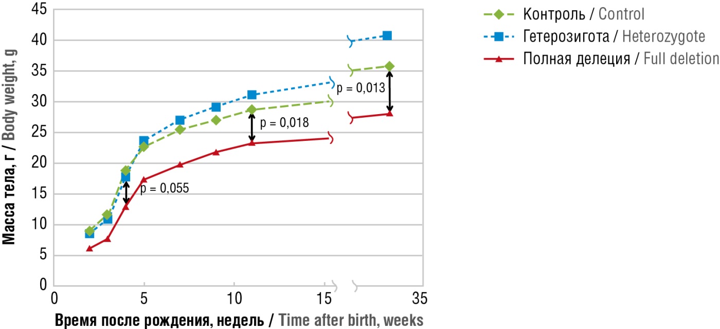 Figure 8. Growth rate in PGAP1 gene knockout male mice (аdapted from [27]).