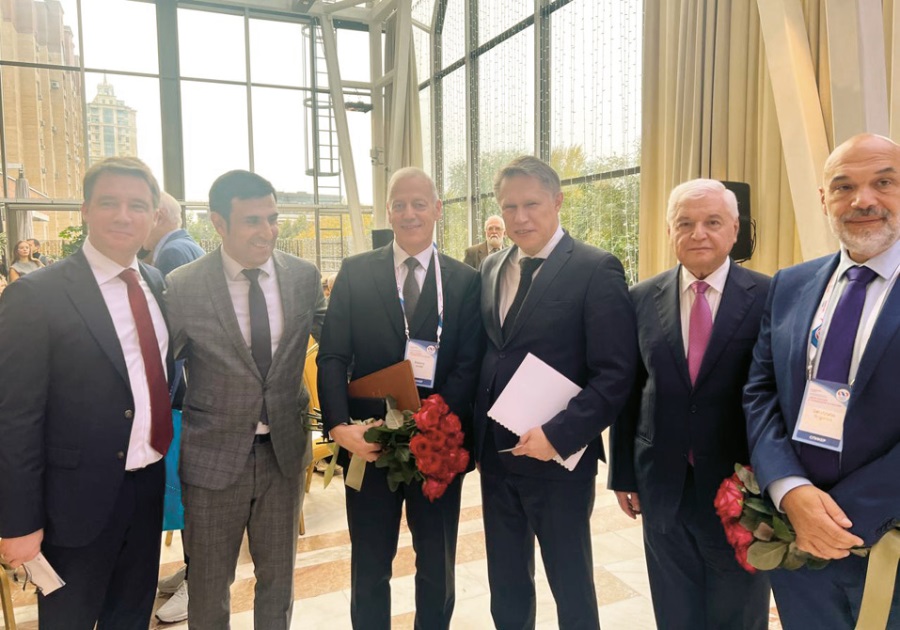 Figure 1. Chief Cardiologist of the Office of the President of the Russian Federation, Dr Sci Med N.V. Lomakin; Professor C. Ay; foreign Member of RAS, Professor I. Elalamy; Minister of Health of the Russian Federation, Dr Sci Med, Professor M.A. Murashko; Academician of RAS, Dr Sci Med, Professor A.D. Makatsariya; foreign member of RAS, Professor G. Gerotziafas.